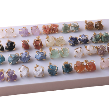 18K oro placcato cristallo grezzo ametista rosa orecchini di quarzo irregolare guarigione pietra ottone gioielli per il matrimonio delle donne
